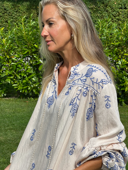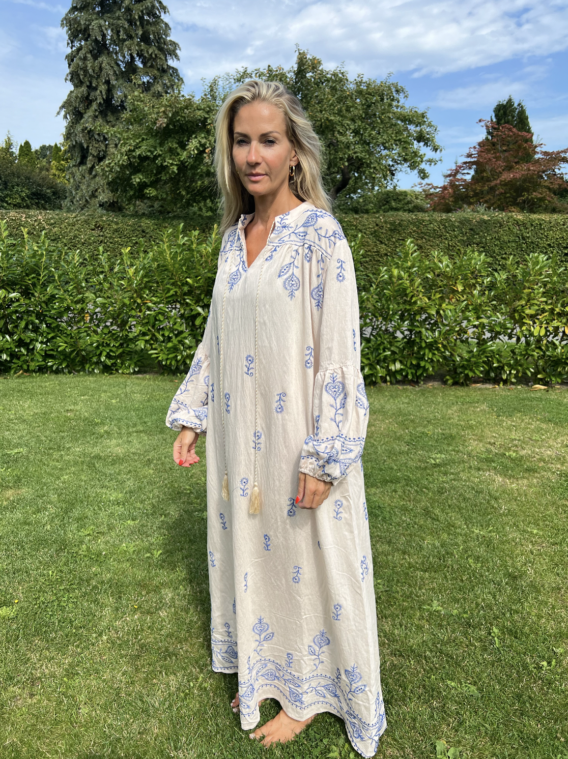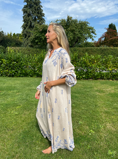 Upplev den perfekta balansen mellan stil och komfort med 'Klänning Boheme - Beige / blå.' Ge dig själv friheten att känna dig bekväm och chic samtidigt. Låt denna klänning bli en del av din vardagsgarderob och upplev hur den lyfter ditt utseende till nya höjder!