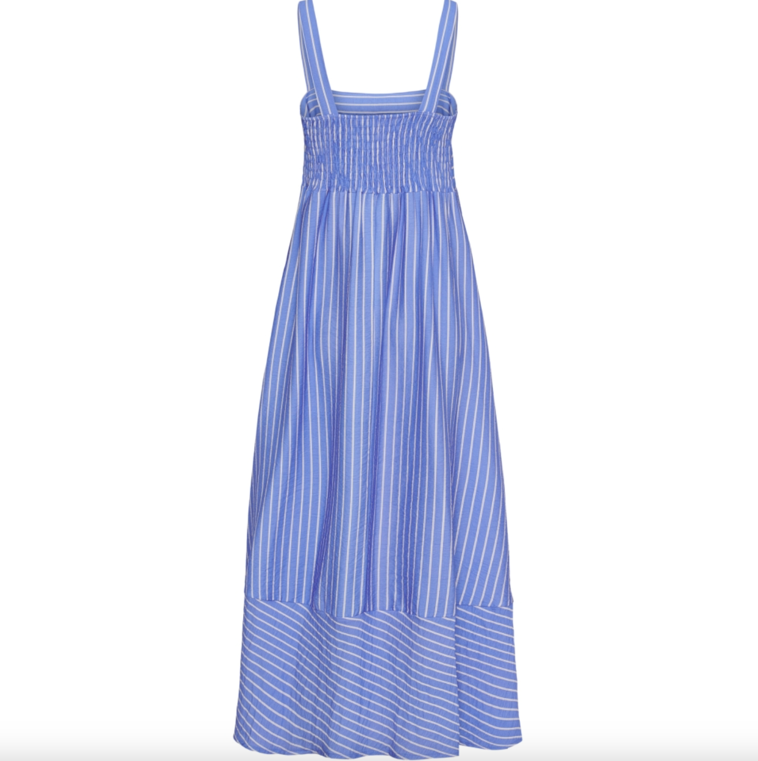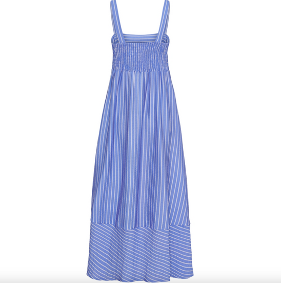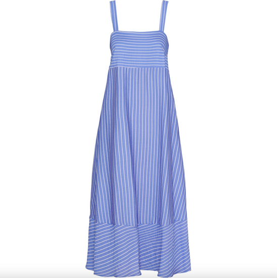 Trött på obekväma sommarklänningar som inte sitter rätt? Klänning Estela erbjuder en lösning med en bekväm passform och ett stilrent randigt mönster. Den kombinerar funktionalitet och stil, vilket gör den till ett idealiskt val för avslappnade sommardagar.