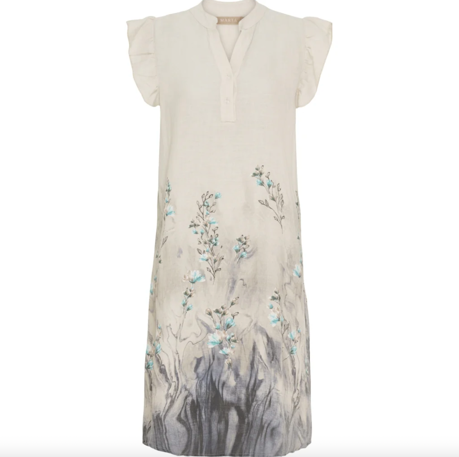 - Sommarklänningen är tillverkad av 45 % viskos och 55 % linne