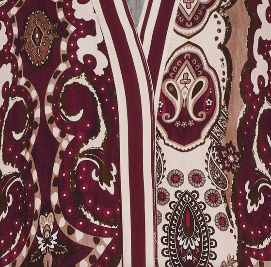 Viskosmaterialet i kombination med det tryckta mönstret i röd färg skapar en iögonfallande look som fungerar väl både ensam och med enkla accessoarer.