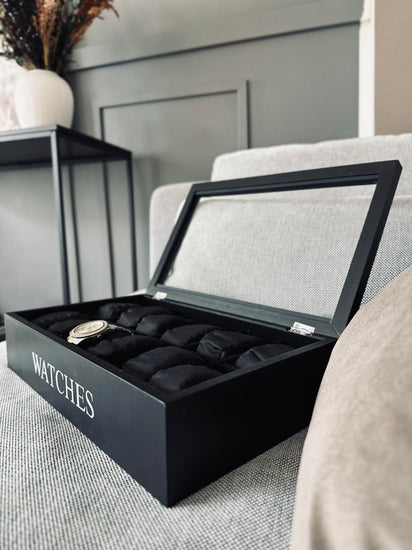 Har du en samling klockor som behöver ett hem? Med denna klocklåda kan du ordna dina klockor på ett snyggt och praktiskt sätt. En skickligt tillverkad lösning som hjälper dig att hålla koll på din tid, stilfullt och effektivt.