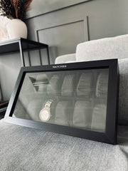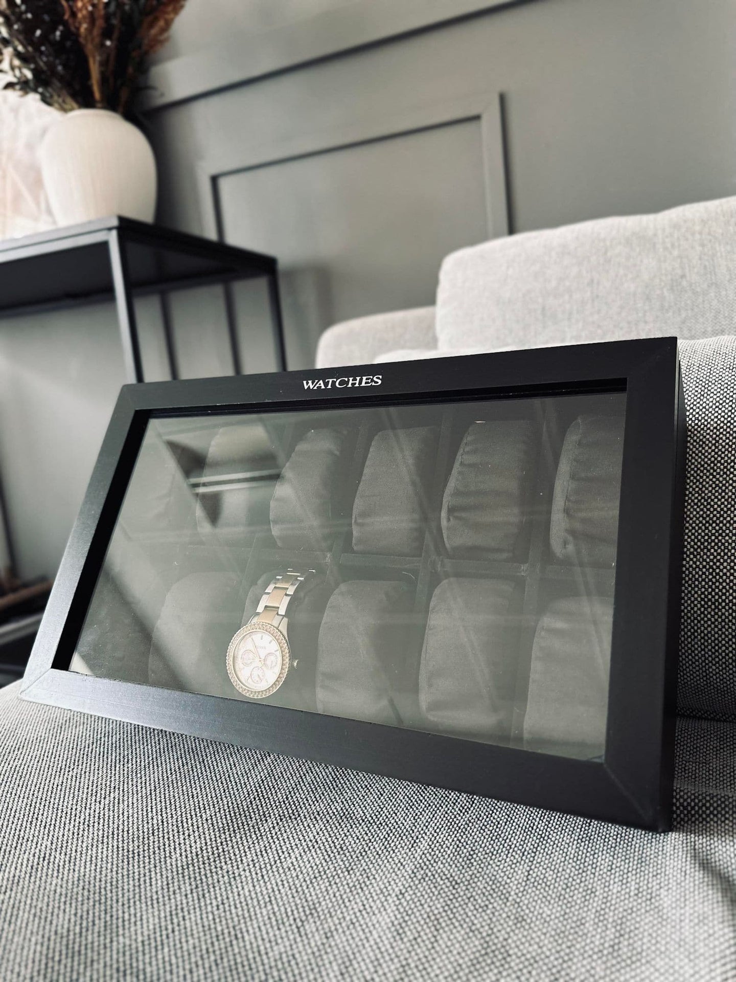 Organisera dina klockor på ett smidigt sätt och ge dem ett hem med denna eleganta klocklåda. Slipp leta efter dina favoritklockor och ha dem alltid nära till hands. Skapa en stilfull och effektiv förvaringslösning för din tid med denna praktiska klockförvaring.