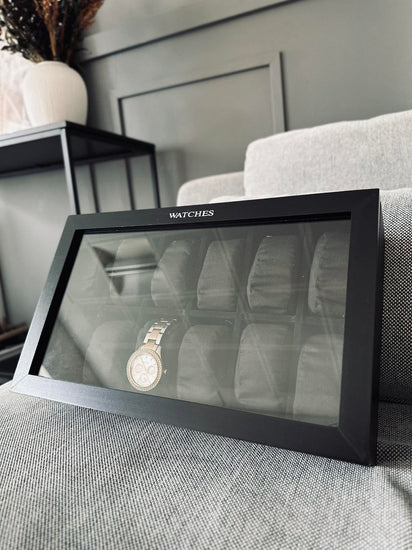 Vår klockförvaring är tillverkad av MDF-material, vilket inte bara ger en stilren och modern look, men också säkerställer långvarig hållbarhet. MDF-materialet är robust och beständigt mot slitage, vilket gör att dina klockor förblir skyddade och organiserade på ett tillförlitligt sätt. Dessutom bidrar dess släta yta till enkel rengöring, vilket gör underhåll till en enkel uppgift.