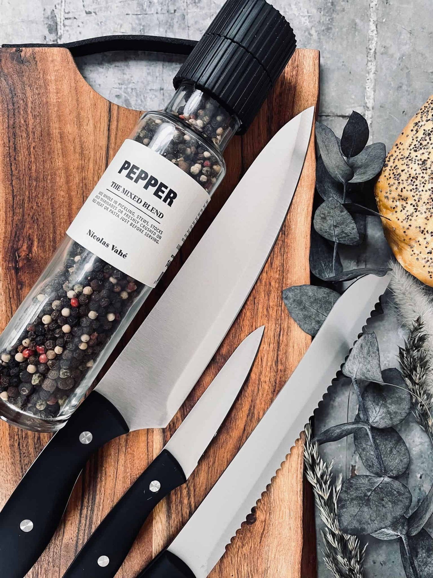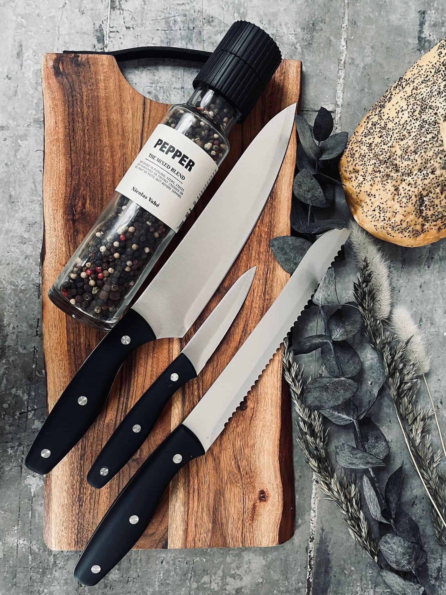 - Innehåller tre högkvalitativa knivar för dagligt bruk