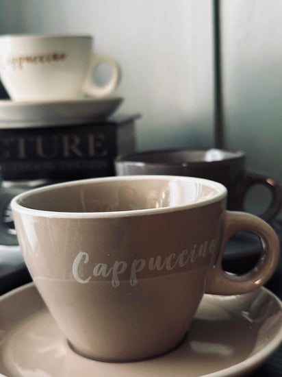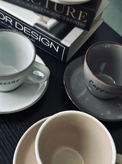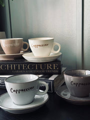 Kopp med fat Cappuccino - Set med 4 st.