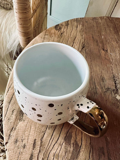Förbättra ditt morgonrutin med "Kopp med guld". Denna robusta och rymliga kopp ger dig friheten att njuta av ditt kaffe eller te på något vis du önskar, samtidigt som du behåller din stil. Enkel att rengöra, den passar perfekt in i din livsstil.
