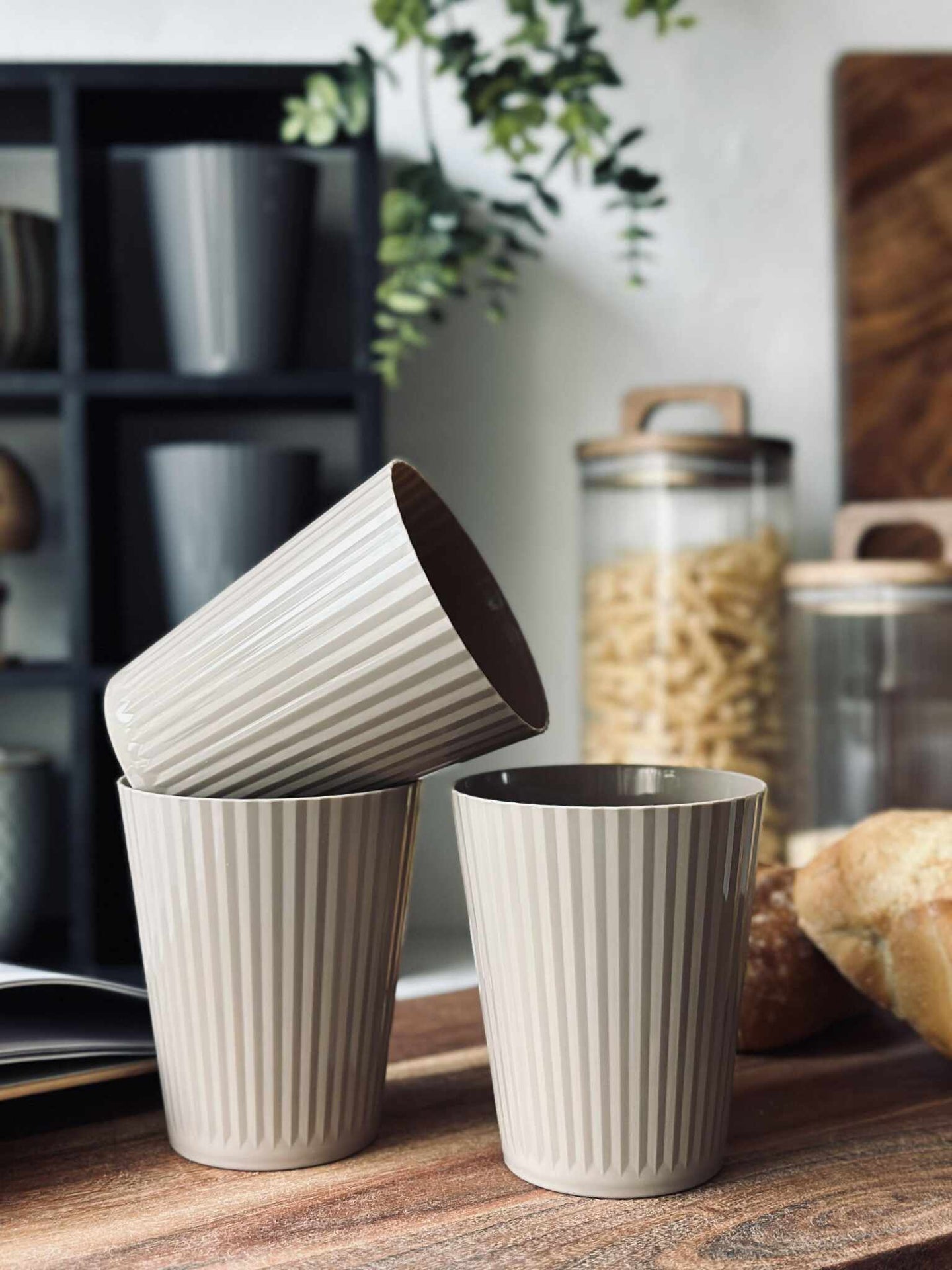 Koppen är tillverkad av beige plast, vilket erbjuder en praktisk och långvarig lösning för daglig användning. Denna plast är lätt att rengöra och motståndskraftig mot stötar, vilket gör den idealisk för både barn och vuxna. Den neutrala färgen smälter enkelt in i olika köksmiljöer, samtidigt som den bidrar till en varm och inbjudande atmosfär i hemmet.