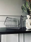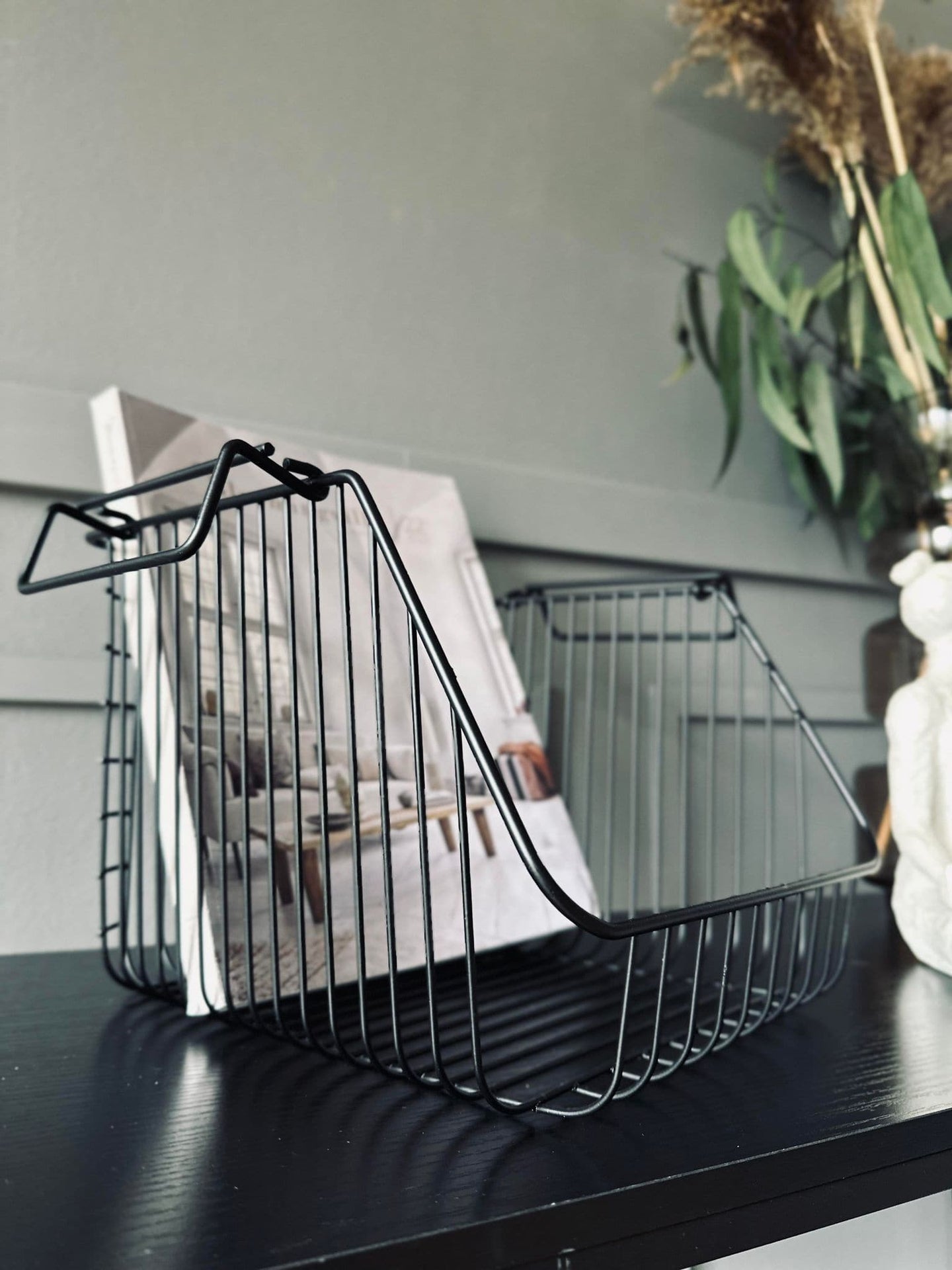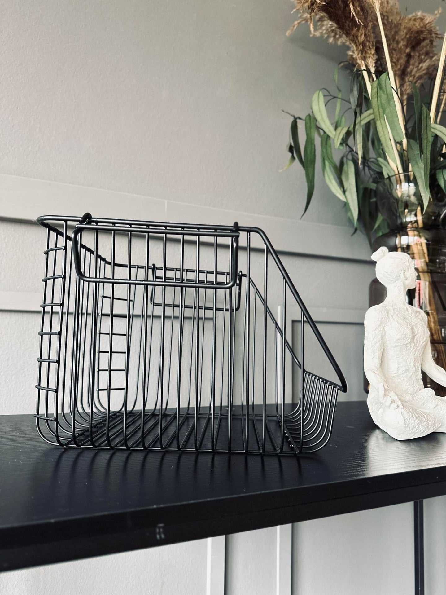 Denna svarta korg är tillverkad av högkvalitativ svart metall, vilket ger den en modern och elegant känsla. Metallkonstruktionen säkerställer dess hållbarhet och långvariga användning. Dess strömlinjeformade design och svarta färg ger ett sofistikerat tillägg till varje inredning, samtidigt som den erbjuder en praktisk förvaringslösning. Förbättra ditt hem med denna funktionella och stiliga svarta metallkorg.