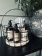 Metallkorgen är skapad med en kombination av trä och metall, vilket ger den både hållbarhet och estetik. Träelementen erbjuder en naturlig och varm känsla, medan metallet bidrar till dess robusthet och långvariga användning. Denna kombination gör korgen idealisk för mångsidig förvaring, samtidigt som den tillför en touch av stil till ditt hem.