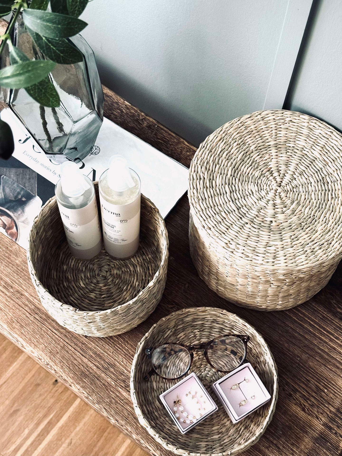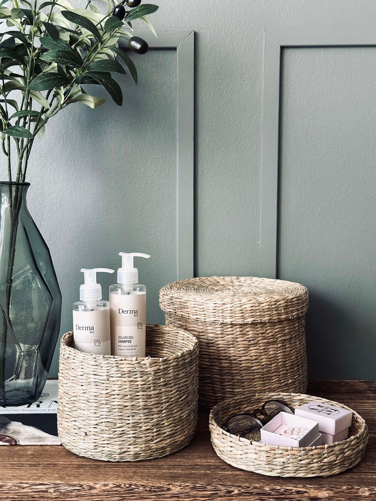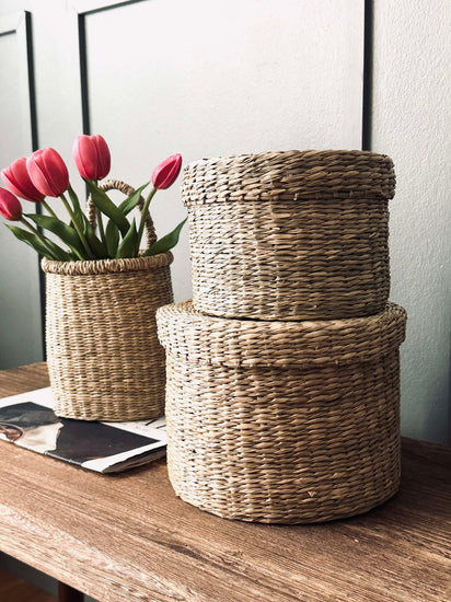 - Förvaringskorgarna är tillverkade av äkta flätat sjögräs