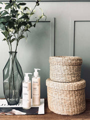 Förvaringskorgarna, tillverkade av äkta flätat sjögräs, erbjuder en varm och jordnära känsla i ditt hem. Materialets naturliga ton och struktur skapar en harmonisk atmosfär som komplementerar olika inredningsstilar. Sjögräsets hållbara egenskaper ger korgarna en robust struktur samtidigt som de är lätta att flytta runt, vilket gör dem praktiska för både förvaring och dekoration.