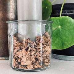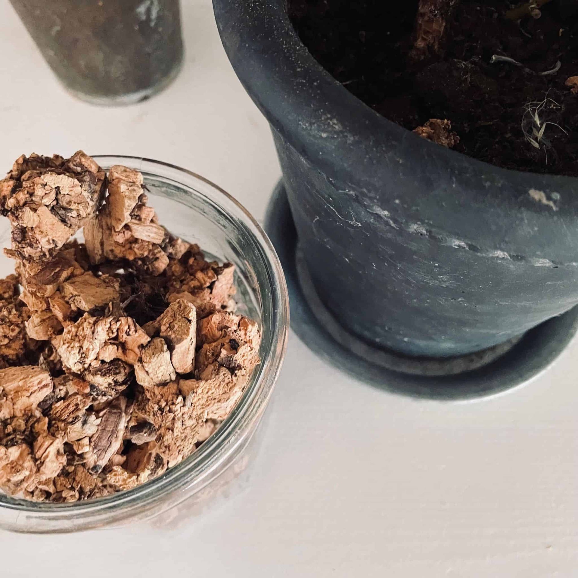 - Levereras i små grova bitar av korkbark i en papperspåse