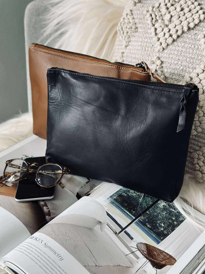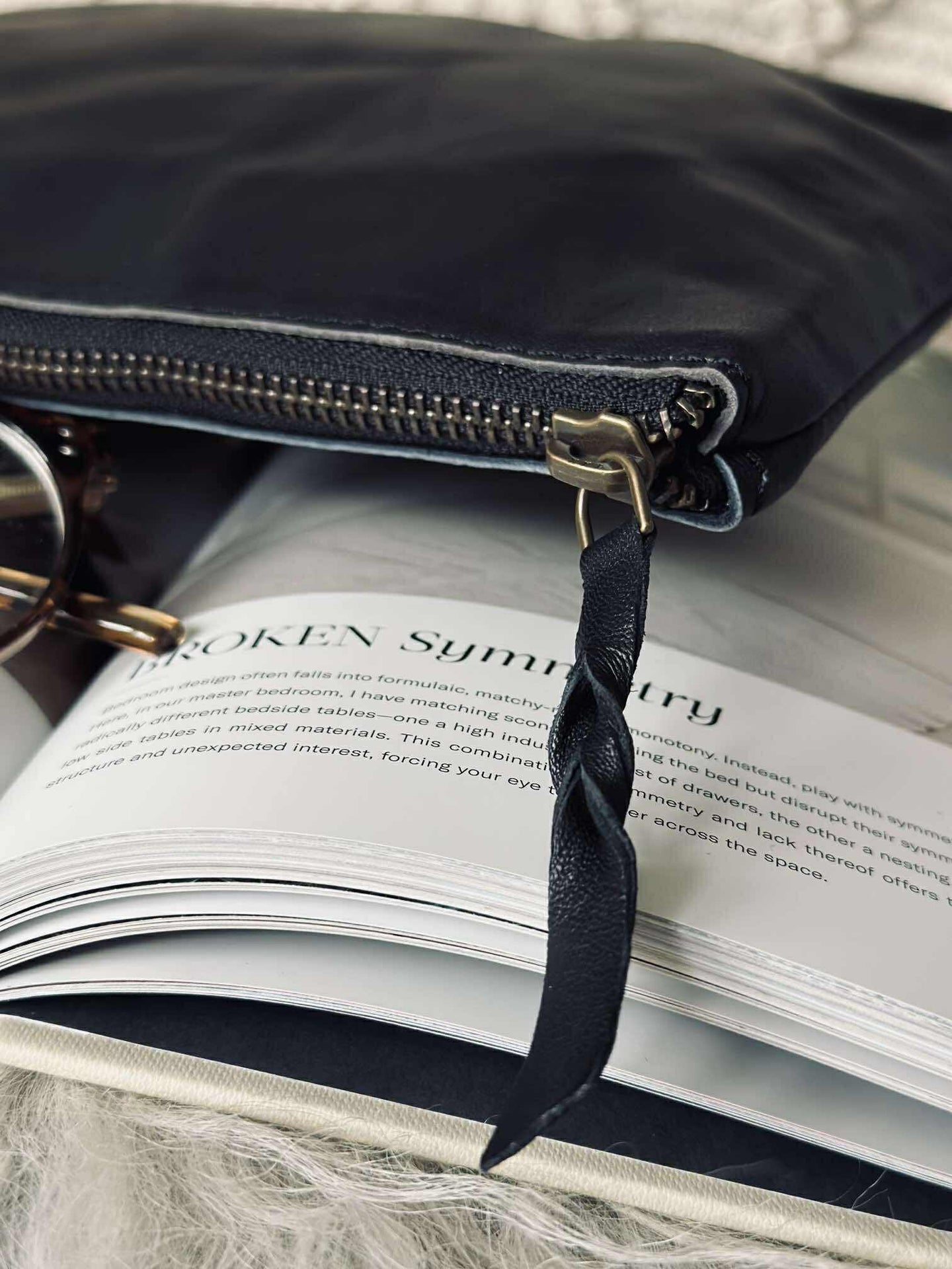 Makeuppungen är tillverkad av läder, vilket ger en hållbar och stilren känsla. Lädrets naturliga egenskaper skyddar innehållet och gör väskan lätt att underhålla. Med tiden utvecklar lädret en distinkt patina, vilket ger makeuppungen en personlig touch. Den robusta ytan står emot repor och slitage, vilket förlänger produktens livslängd och gör den till ett pålitligt val för vardagsbruk.