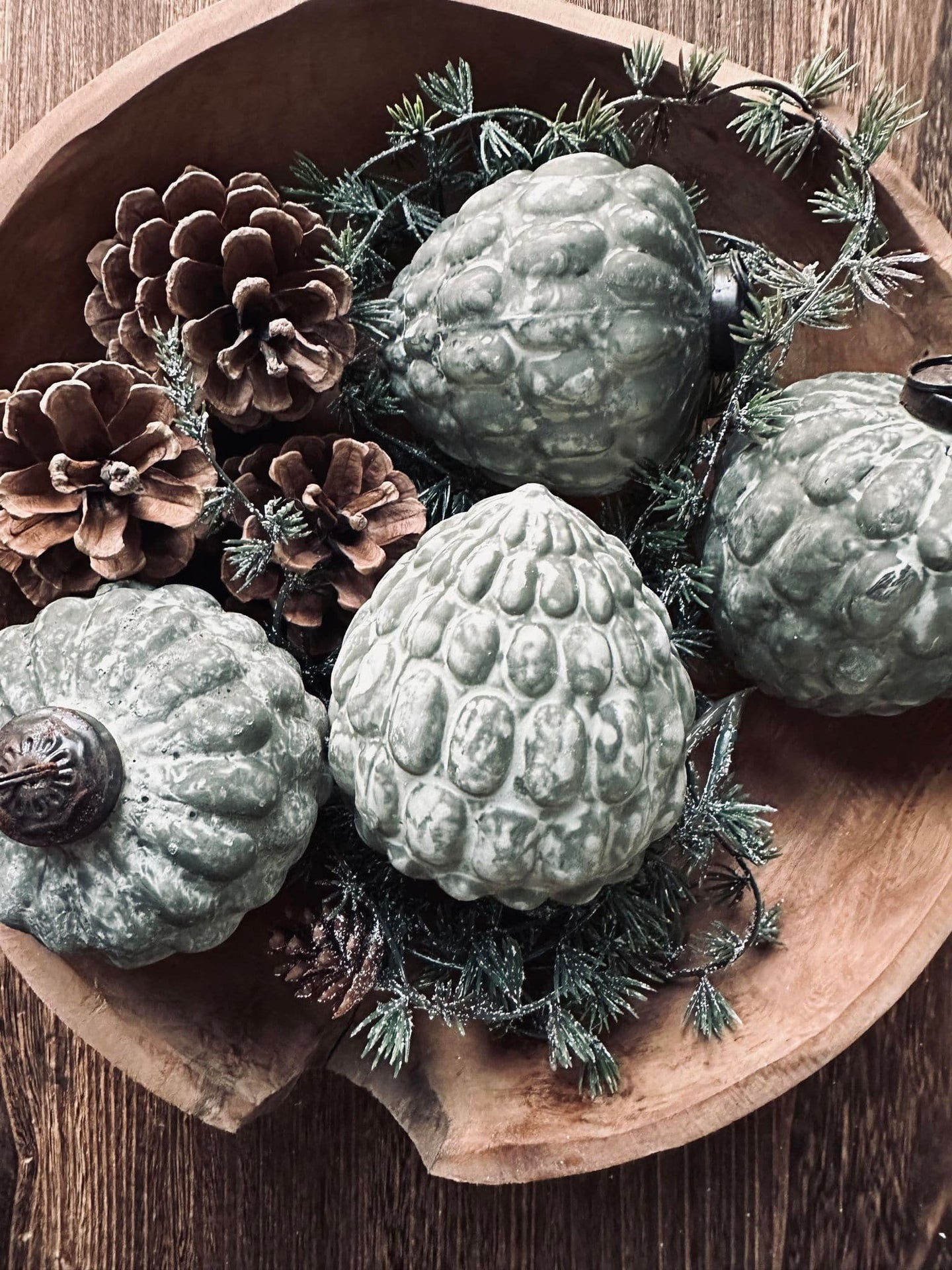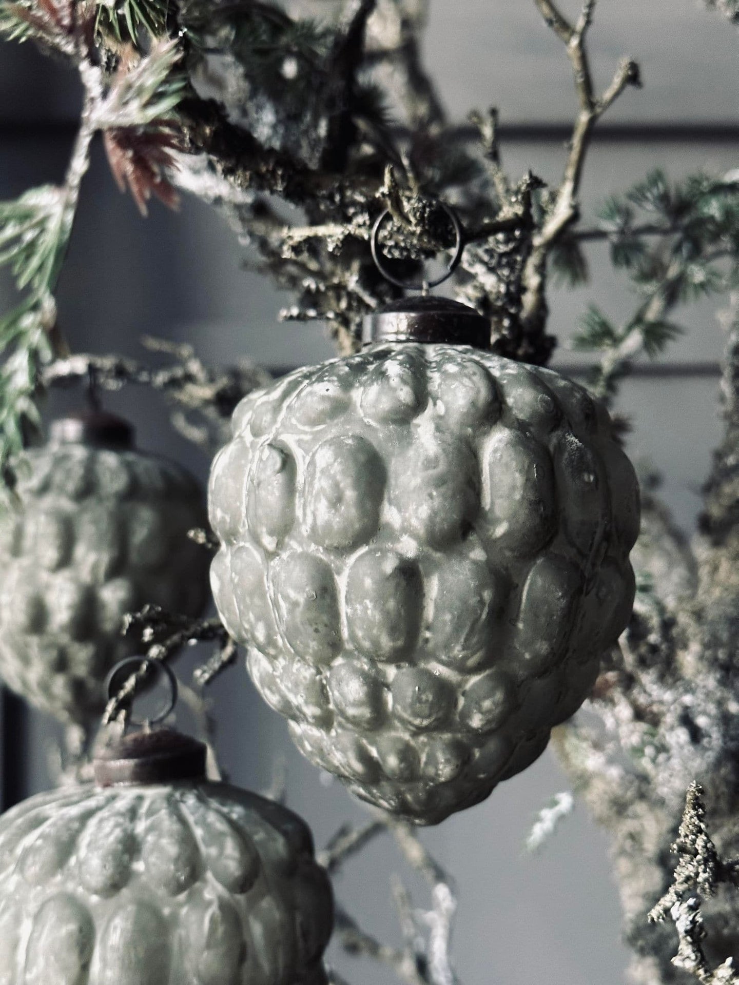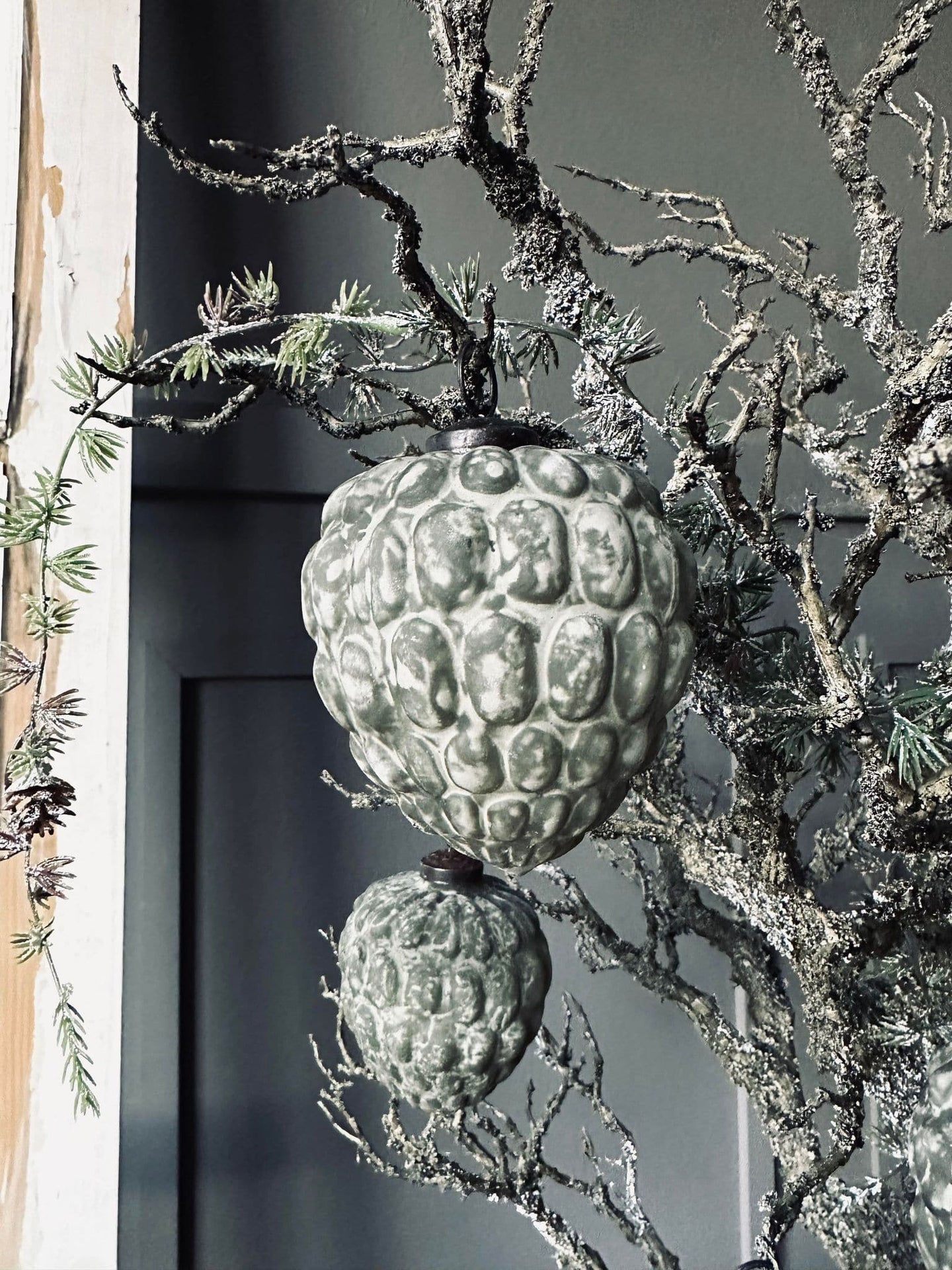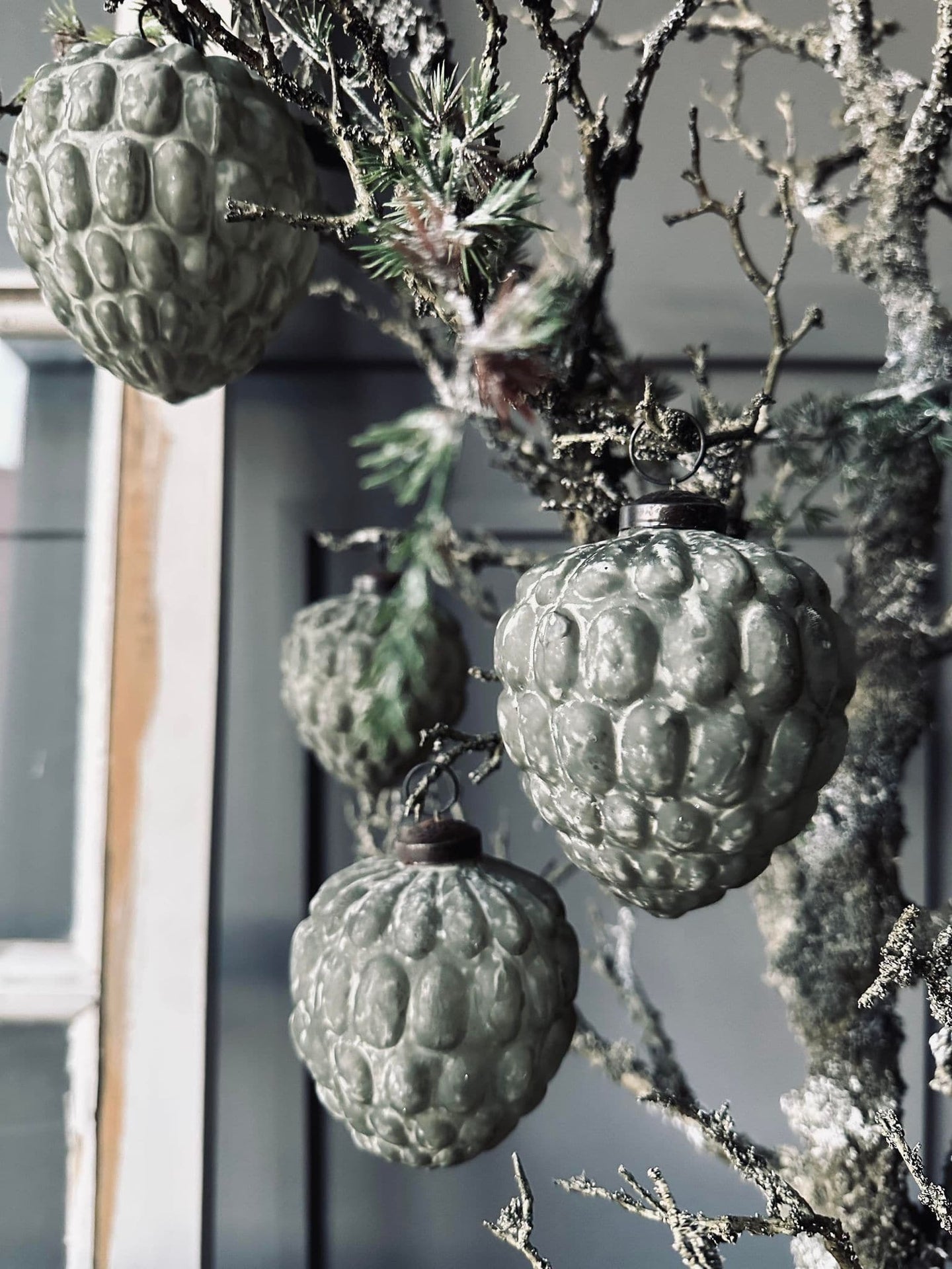 Våra koglar i glas är gjorda av rustikt glas, vilket ger dem en unik och stilfullt utseende. Deras distinkta design kompletterar alla typer av inredningar och skapar en mysig atmosfär. Det rustika glaset ger koglarna en robust och hållbar kvalitet, vilket gör dem till ett idealiskt tillskott till din juldekoration. Oavsett om du placerar dem på en hylla eller hänger dem på din julgran, kommer dessa koglar i glas att förhöja din heminredning.