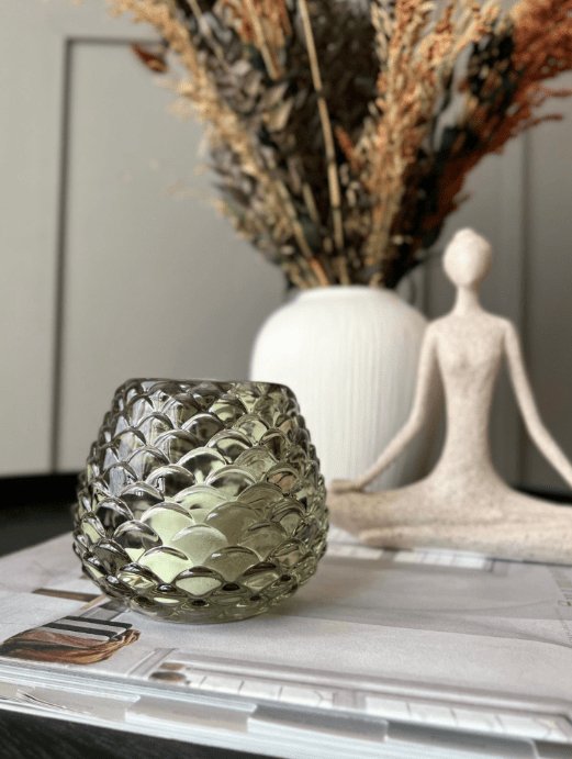 För dig som uppskattar en varm och stämningsfull atmosfär hemma, är denna gröna kotteljusstake ett utmärkt tillskott. Med sin diskreta men ändå unika design blir den en perfekt detalj i ditt hem som skapar en mysig stämning.