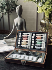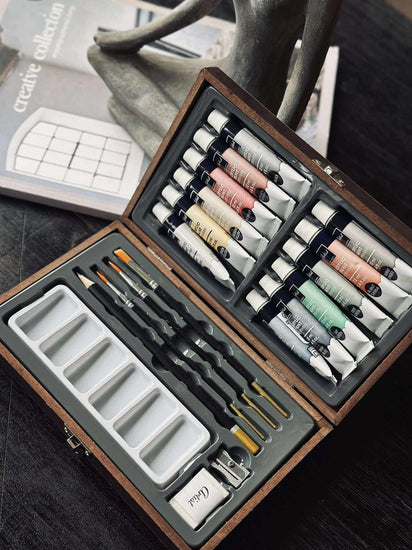 - Mini Krea-koffert med färgpennor, tuschpennor, färgkritor och vattenfärger