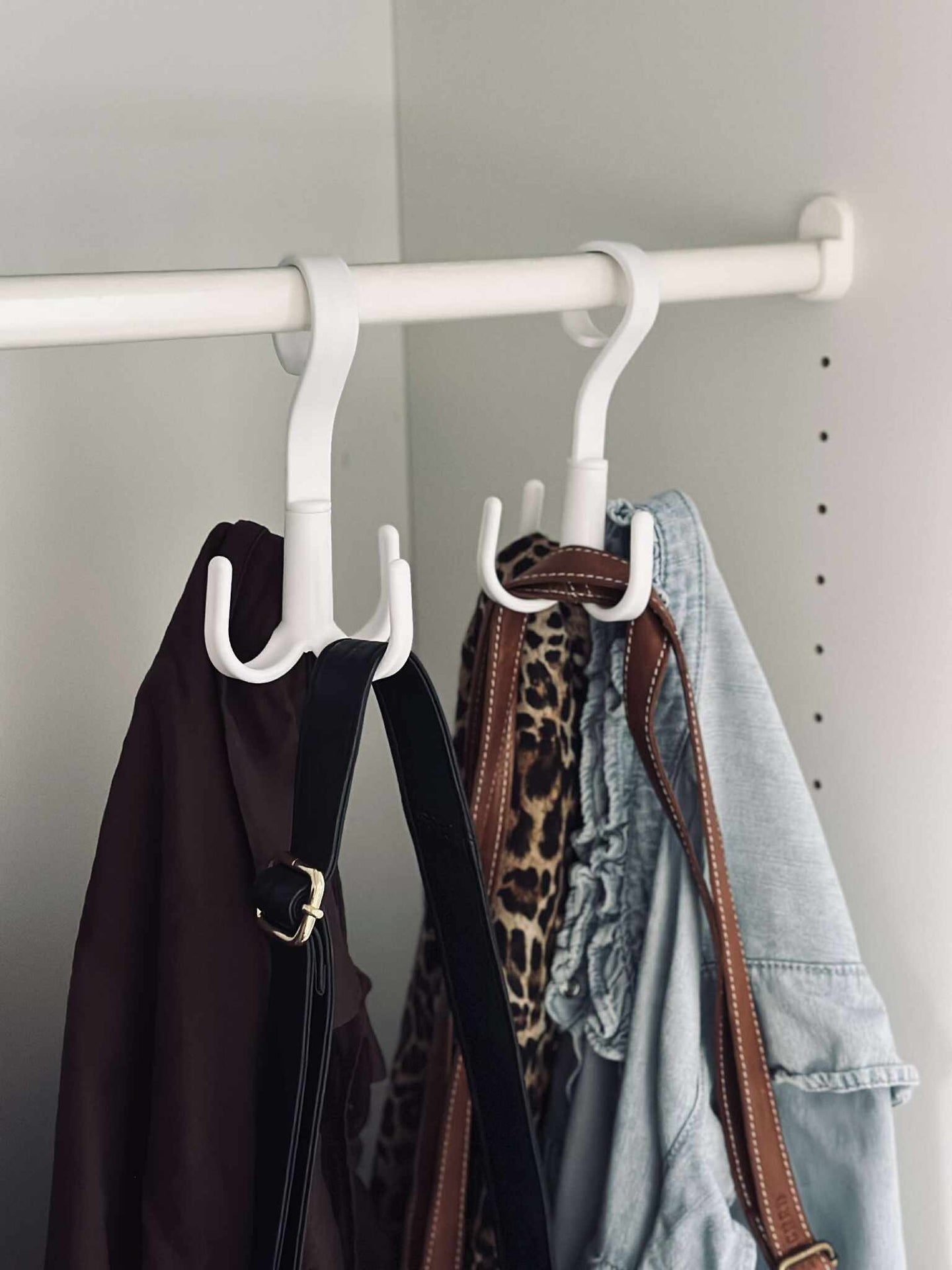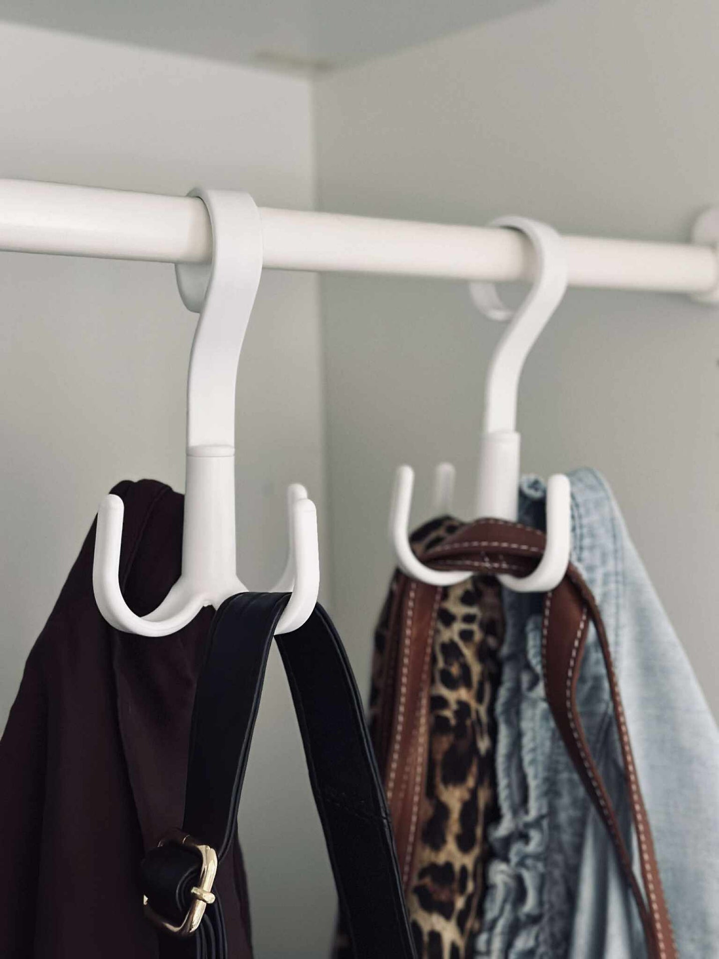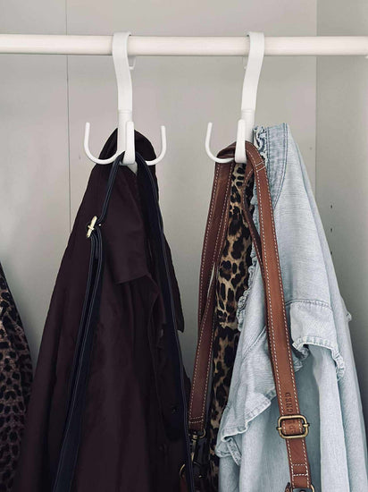 Trött på röriga garderober och svårtillgängliga väskor? Dessa praktiska krokar erbjuder en enkel lösning för att organisera klädhängare och hålla dina accessoarer lättåtkomliga. Ett smidigt tillägg för att maximera utrymmet och ordningen utan att behöva krångla med komplicerade installationer.