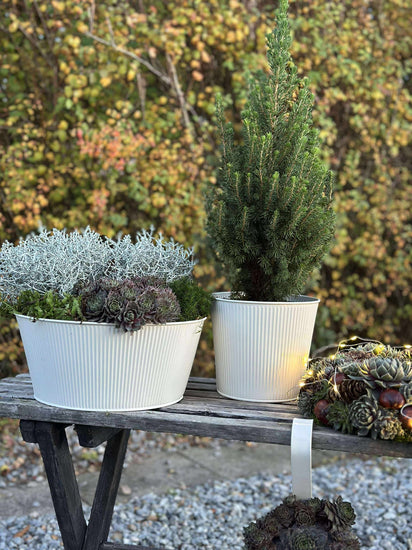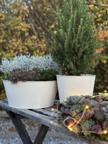 Rillig krukskydd är tillverkat av metall, vilket ger en robust och långvarig lösning för att skydda dina krukor. Metallen erbjuder ett tillförlitligt skydd mot väderpåverkan, vilket säkerställer att dina växter förblir skyddade under olika klimatförhållanden. Dessutom bidrar materialets styrka till att bibehålla formen och stabiliteten över tid, vilket gör det till ett praktiskt val för trädgårdsentusiaster.