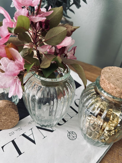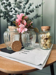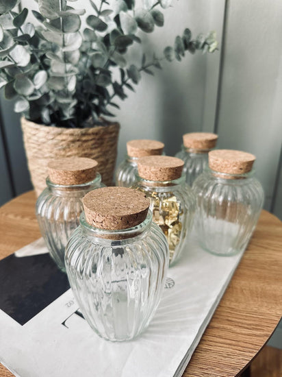 - Paket med 6 förvaringsglas med korkpropp