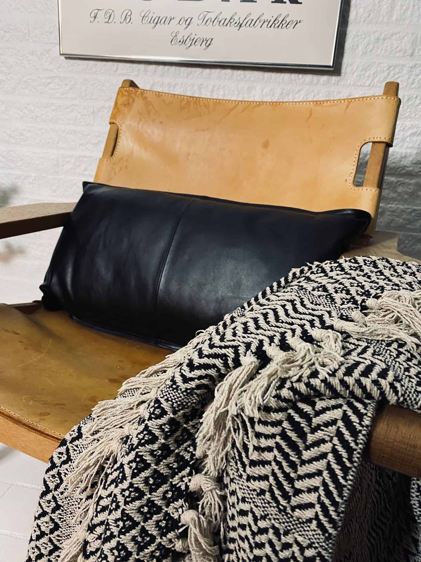 Kudde i svart läder – 35x65cm