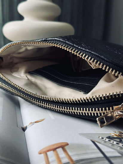 När du är på språng och behöver en praktisk men stilren lösning för att organisera dina tillhörigheter, är 'Kuvertväska krokodil' det du söker. Med smart förvaring och flexibilitet anpassar den sig enkelt till olika behov och tillfällen.