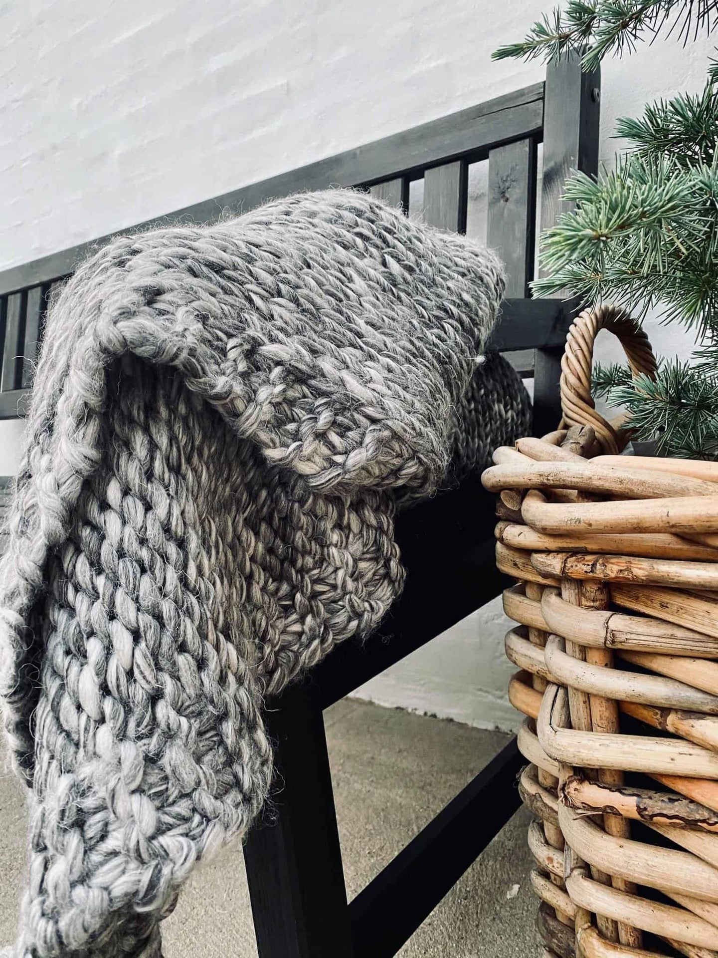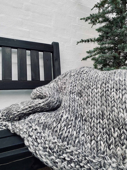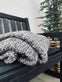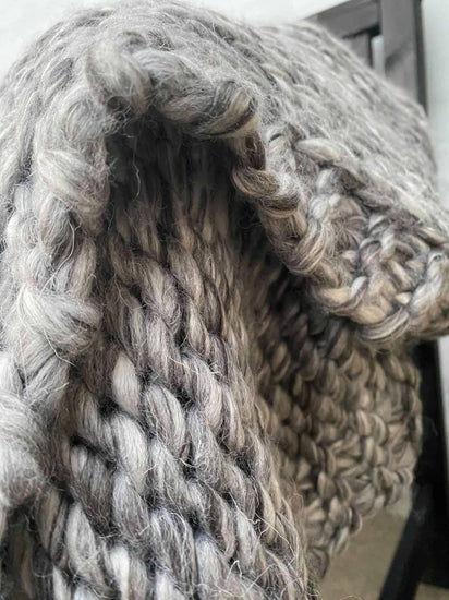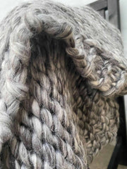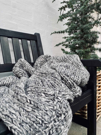 - Utsökt och mysig stickad pläd i varma grå nyanser