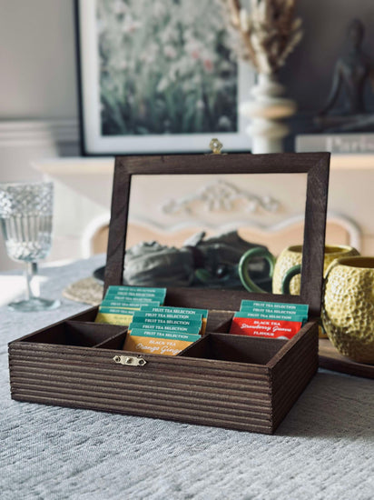 Slut på röran i köket! Skapa ordning och reda med vår Låda för tepåsar idag. Gör din te-stund till en lugn och avslappnad upplevelse med enkel tillgång till dina favoritsmaker. Ge dig själv den gåvan av organisation som du förtjänar!