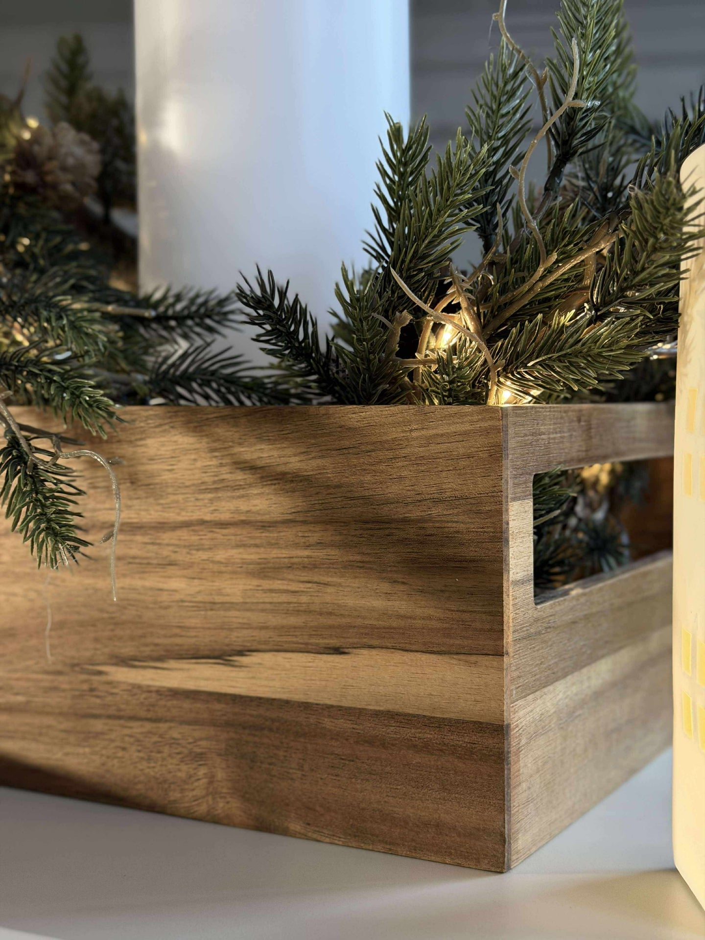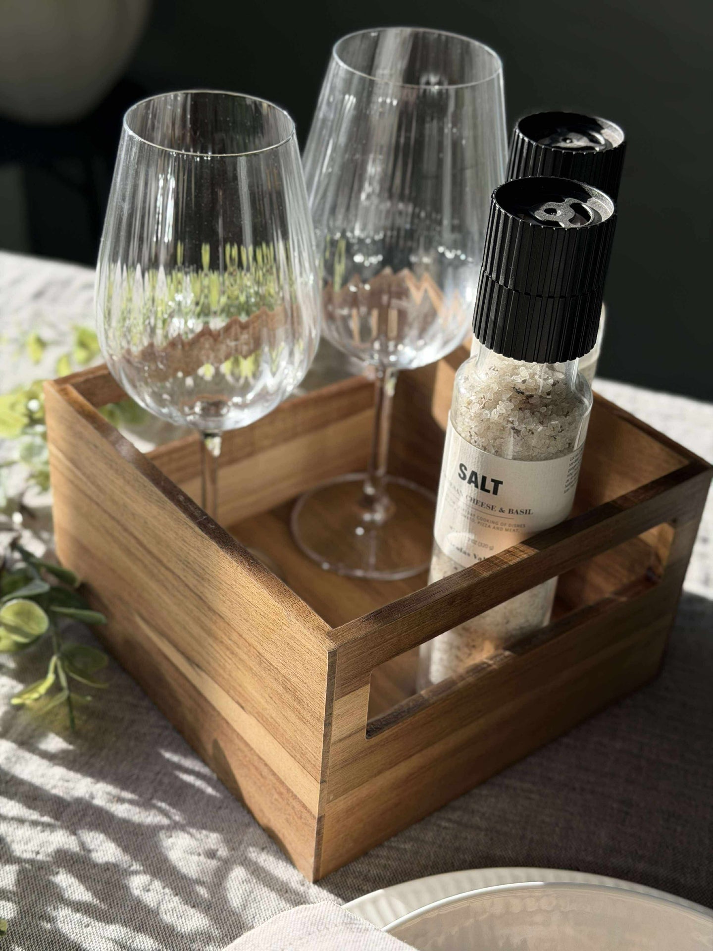 Trälådan, tillverkad av akaciaträ, erbjuder en robust och hållbar lösning för dina förvaringsbehov. Akaciaträ är känt för sin naturliga motståndskraft mot fukt och skadedjur, vilket gör det idealiskt för långvarig användning. Dess varma, rika toner tillför en naturlig skönhet till ditt hem, samtidigt som det smälter väl in i olika inredningsstilar. Denna trälåda kombinerar funktionalitet med en tidlös estetik.