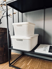 Låda med lock - Large Vila White är en lättanvänd lösning för att hålla ordning på småsaker i hemmet. Den snygga designen och den praktiska storleken gör den idealisk för att organisera och skapa struktur i ditt vardagsrum, kök eller badrum.