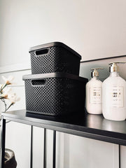 Organisera ditt hem och skapa lugn och harmoni med Small VILA BLACK låda med lock. Ge dina värdesaker ett säkert hem och minska stressen från rörig förvaring. Upplev fördelarna av en organiserad och välordnad miljö idag!