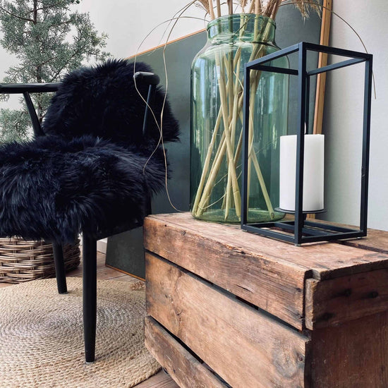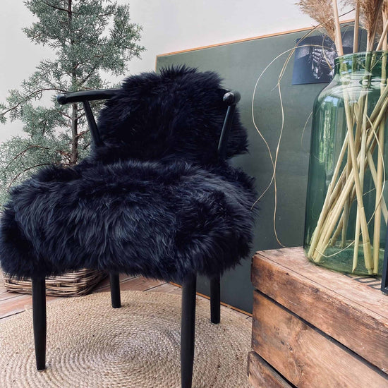 Förvandla din matsal till en mysig och trivsam miljö med detta svarta lammskinn. Det är inte bara snyggt att se på utan fungerar även som en extra stoppning för dina stolar som gör dem mer bekväma att sitta på.