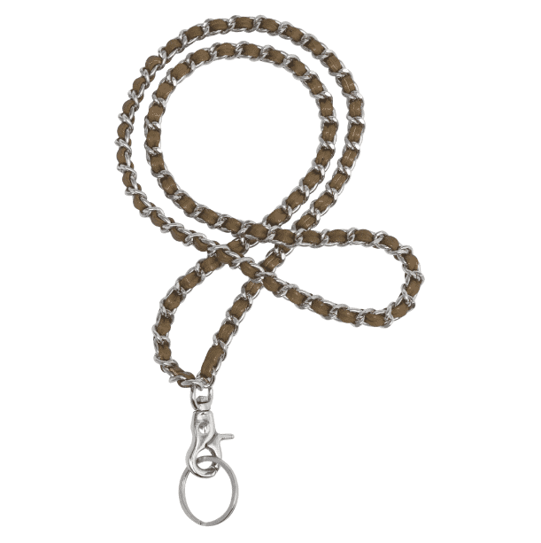 Lång nyckelring i skinn och metall – Oliv