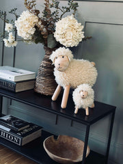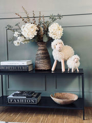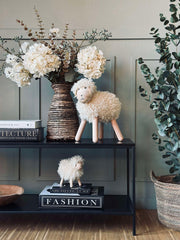 Fårskinnsfällen med sina naturliga färger ger en varm och inbjudande känsla till varje rum. Dess robusta träkonstruktion säkerställer långvarig hållbarhet och stabilitet, vilket gör den till ett pålitligt val för inredning. De naturliga nyanserna harmoniserar lätt med olika inredningsstilar och bidrar till en lugn och balanserad atmosfär i hemmet.