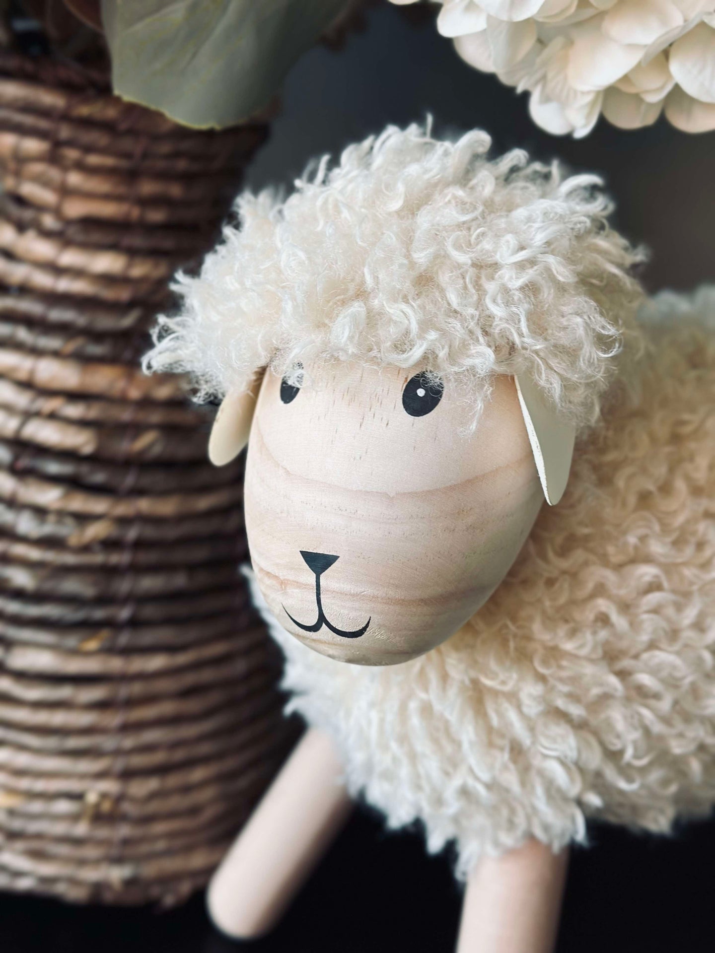 - Fårskinnsfällen har naturliga färger och en robust träkonstruktion