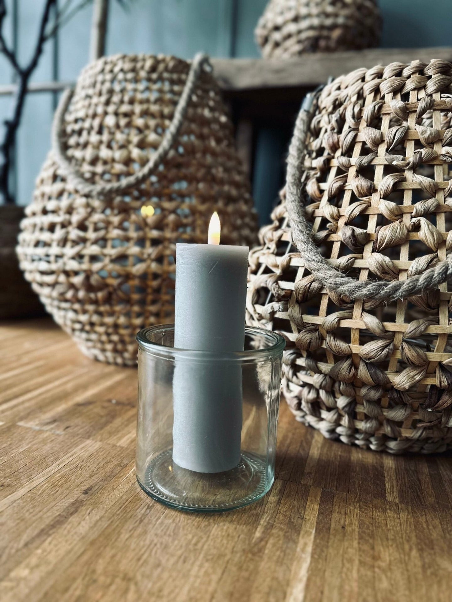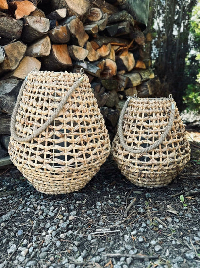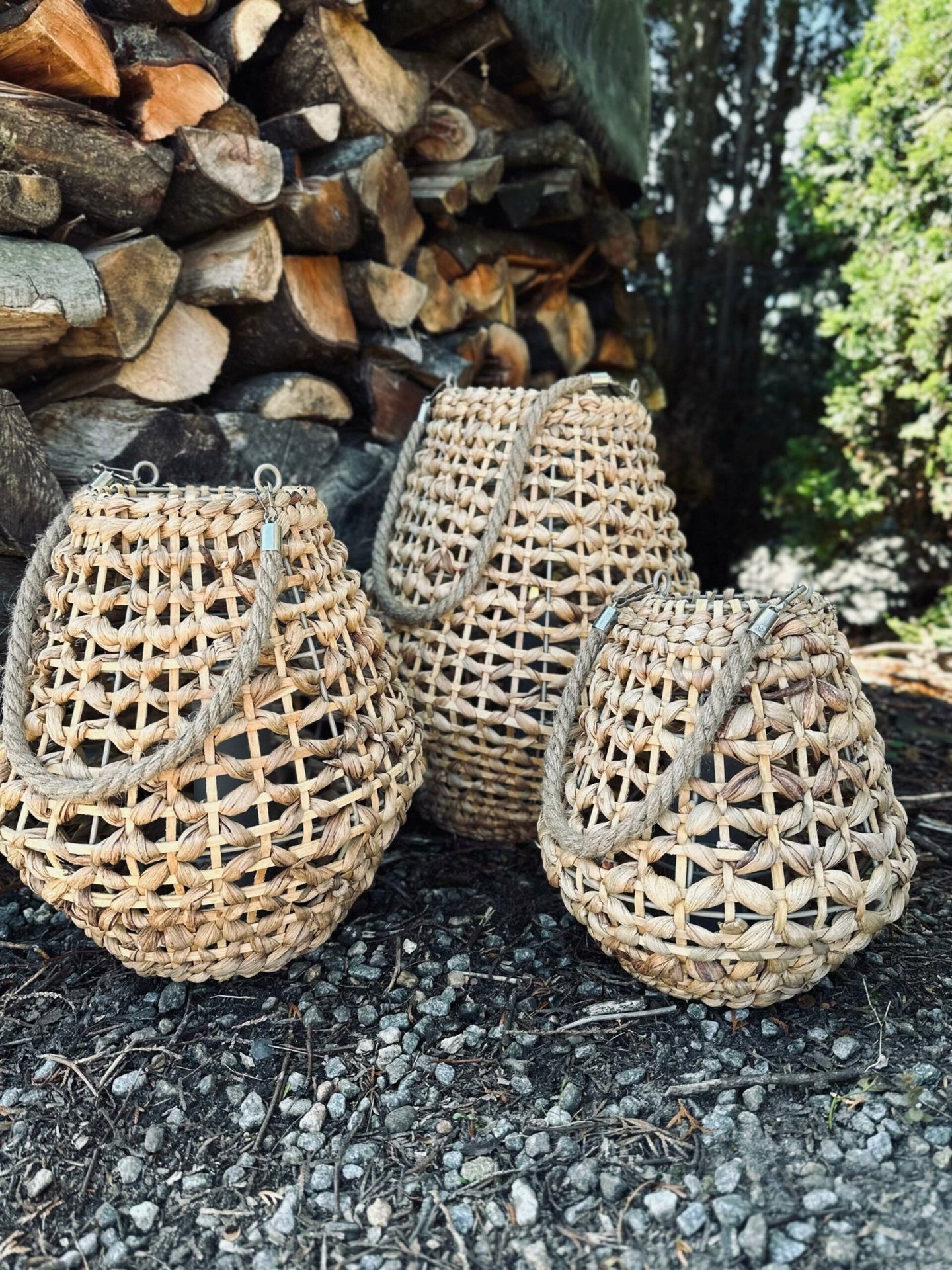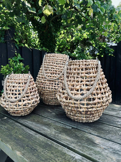 Vår vattenhyacintlykta är tillverkad av naturlig vattenhyacint, vilket ger en rustik och organisk känsla till din inredning. Detta naturliga material ger inte bara en unik och vacker estetik, utan bidrar även till en mer hållbar produkt. Den naturliga vattenhyacinten skapar en varm och inbjudande atmosfär när ljuset skiner genom dess vävda struktur.