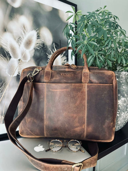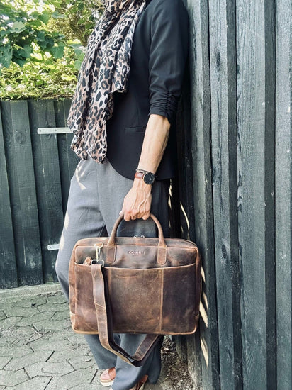 Denna laptopväska är tillverkad av 100 % äkta kohud, vilket ger den både hållbarhet och en sofistikerad estetik. Kohudens naturliga tålighet mot slitage gör att väskan kan hålla i många år, samtidigt som den åldras vackert. Dessutom ger den äkta kohuden en lyxig känsla och förbättrar din professionella image.
