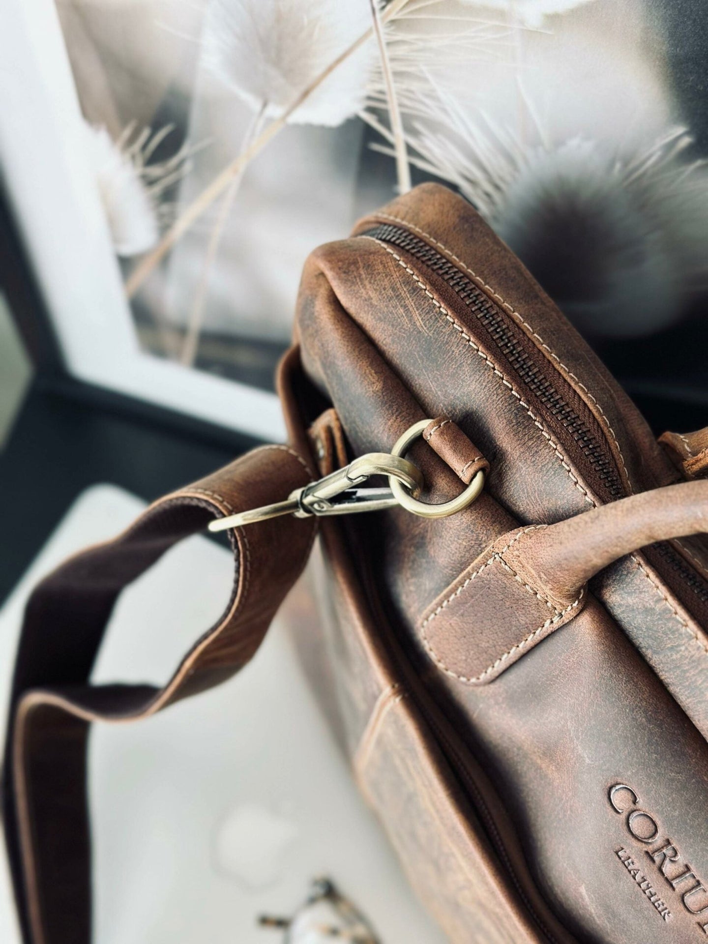 - Spännen och blixtlås i mässing ger en lyxig touch