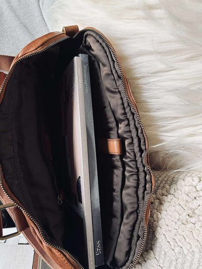Trött på att leta efter dina saker i röriga väskor? Laptop Rå Boheme - Ny Cognac erbjuder en smidig lösning för att organisera och transportera dina vardagliga nödvändigheter, inklusive din dator, med stil och funktionalitet.