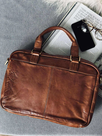 Denna laptopväska är tillverkad av högkvalitativt, tvättat skinn, vilket ger en särpräglad kombination av stil och hållbarhet. Skinnets mjuka yta känns behaglig att ta i och erbjuder samtidigt ett robust skydd för din laptop. Det tvättade skinnet ger varje väska en individuell karaktär, vilket gör den till en personlig accessoar i din vardag.