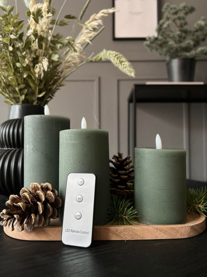LED Blockljus Grön - Set om 3 st med fjärrkontroll