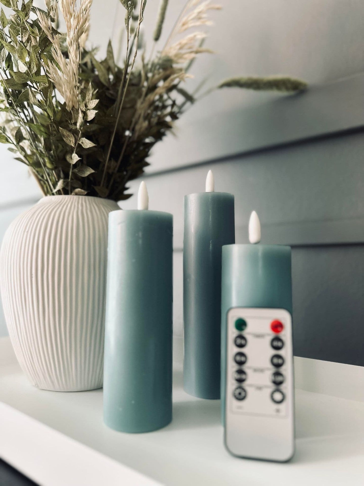 LED Blockljus / Havblå 3 st – Inkl. fjärrkontroll
