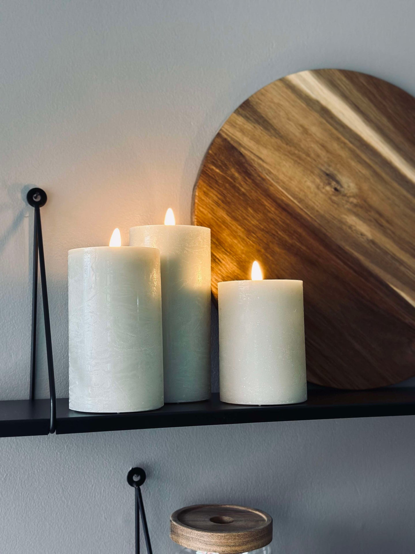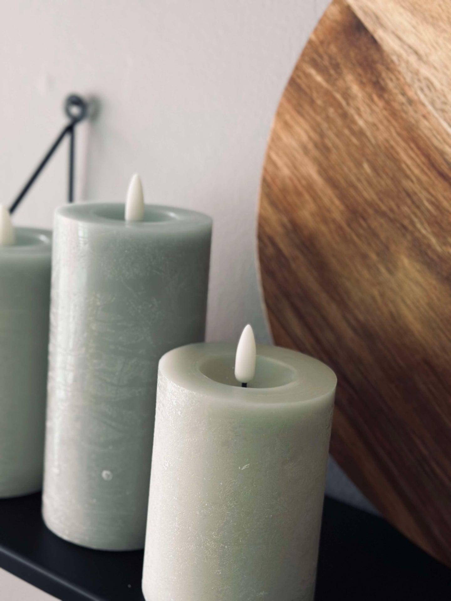 LED Blockljus / Mint – 3 st Rustikt ljus