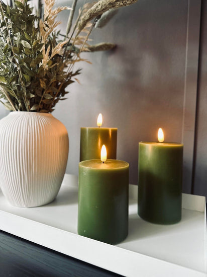 - Gjorda av vax med 3D-flamma