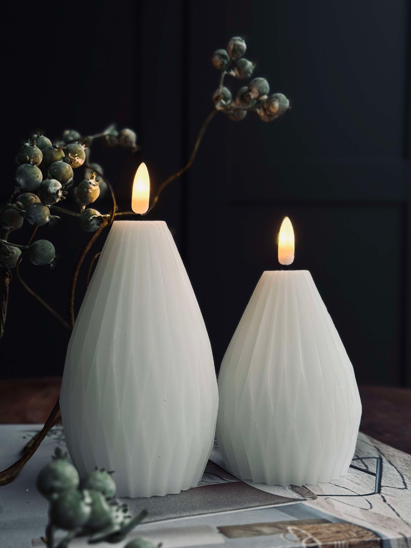 Dessa LED-ljus är gjorda av vax, vilket ger dem ett autentiskt och naturligt utseende. Vaxmaterialet bidrar till att ljusen ser ut som traditionella stearinljus, samtidigt som de erbjuder fördelarna med LED-teknik. Detta skapar en varm och inbjudande atmosfär utan risk för brand eller rök. Utmärkta för både vardagsrum och speciella tillfällen.
