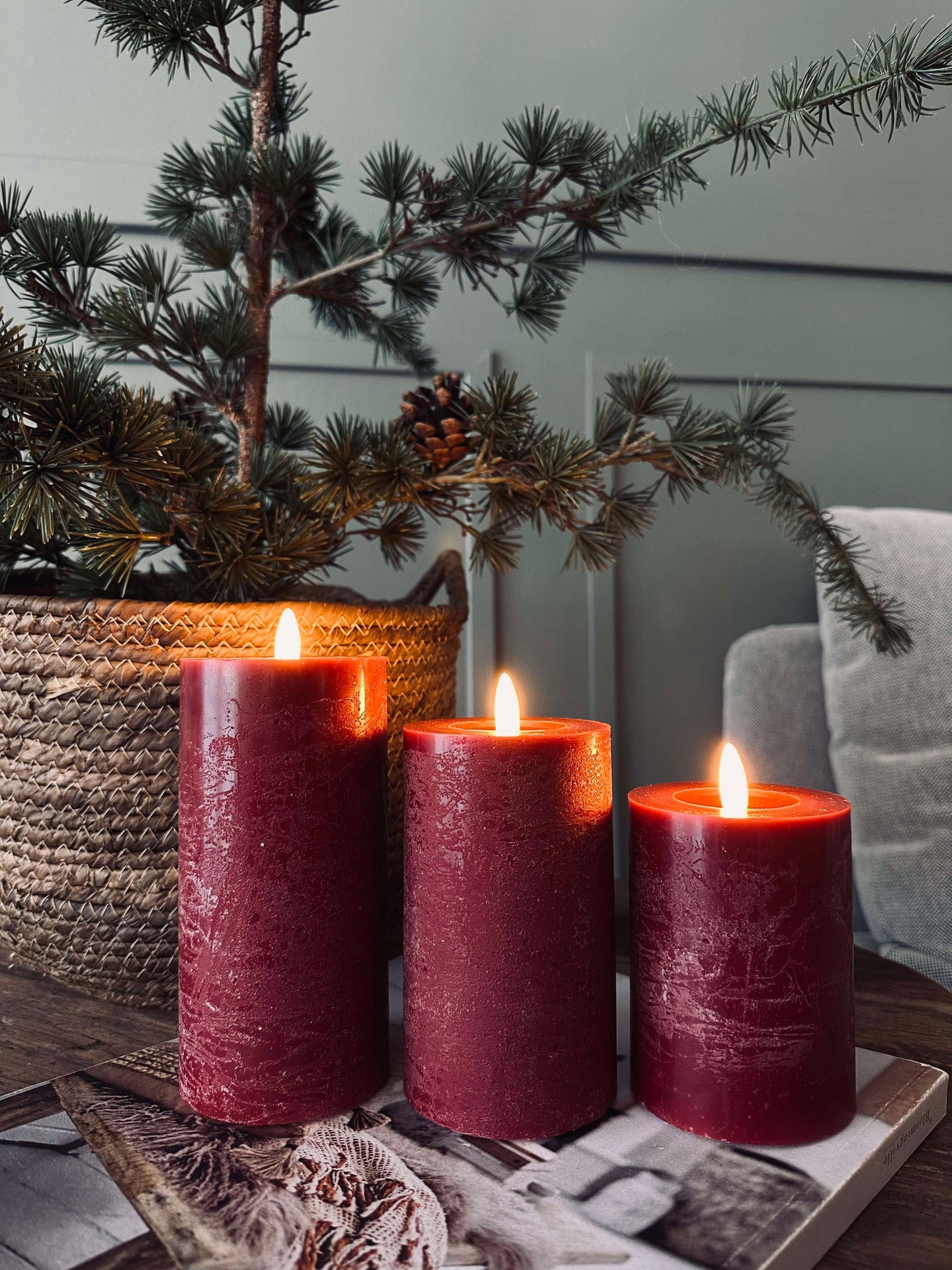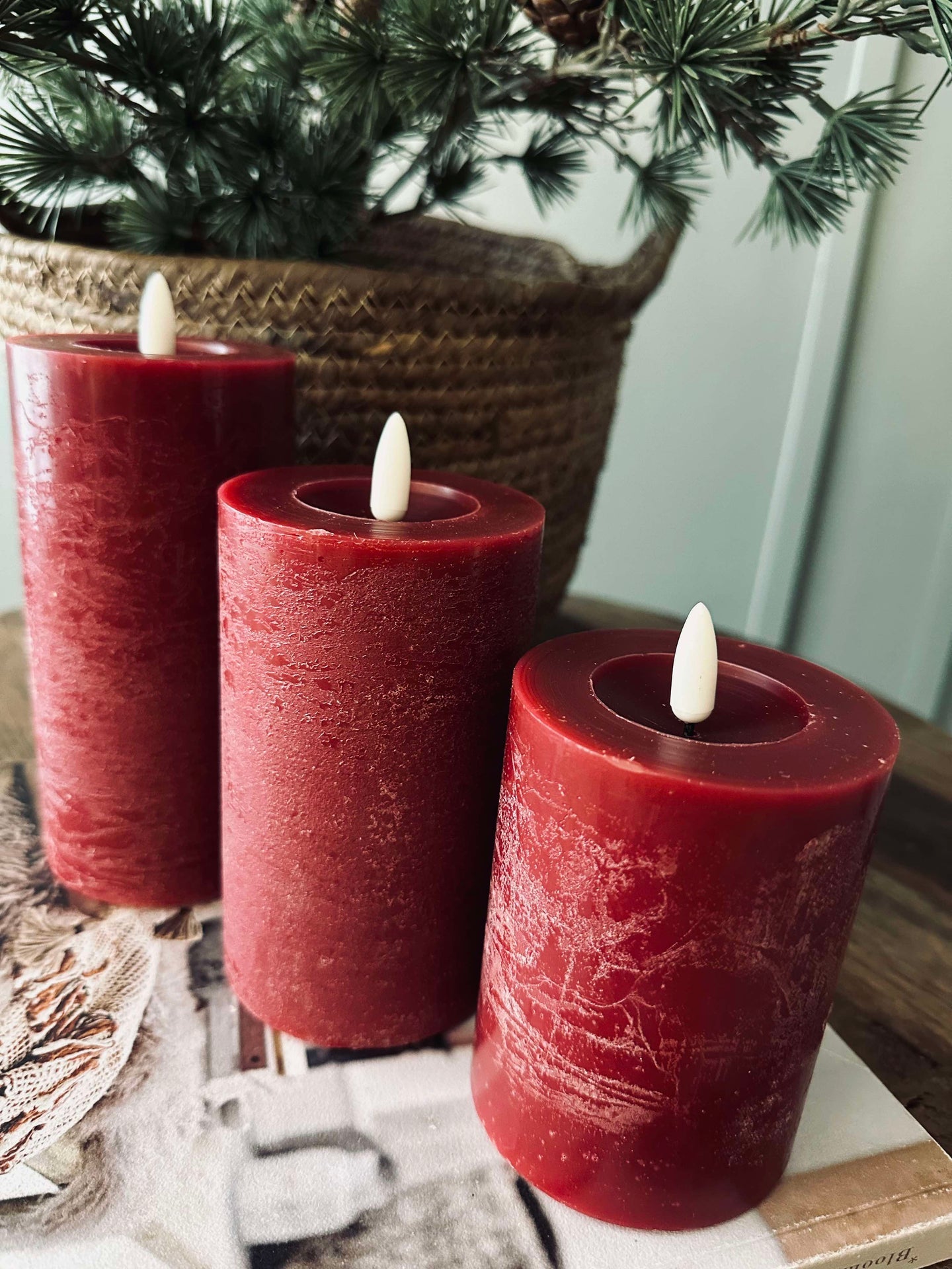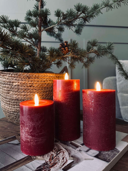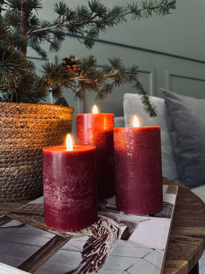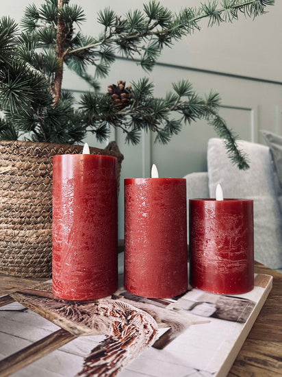 LED Blockljus / Röd – 3 st Rustikt ljus
