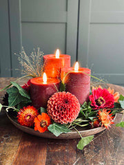 - Setet innehåller tre vaxljus med måtten Ø 7,5 cm x 10 cm, 12,5 cm och 15 cm