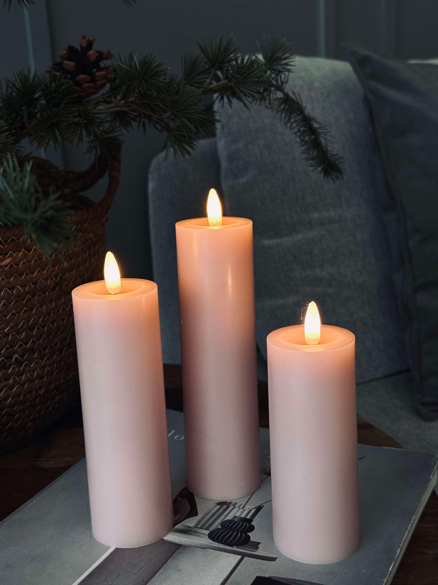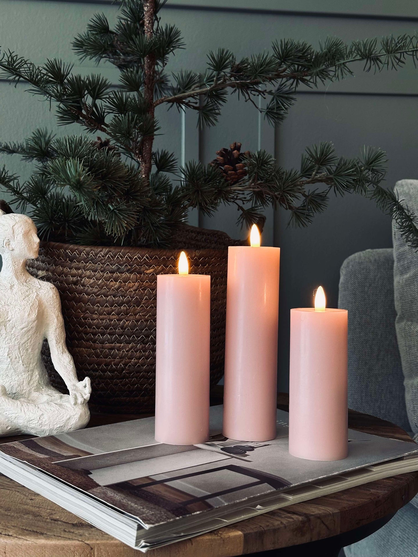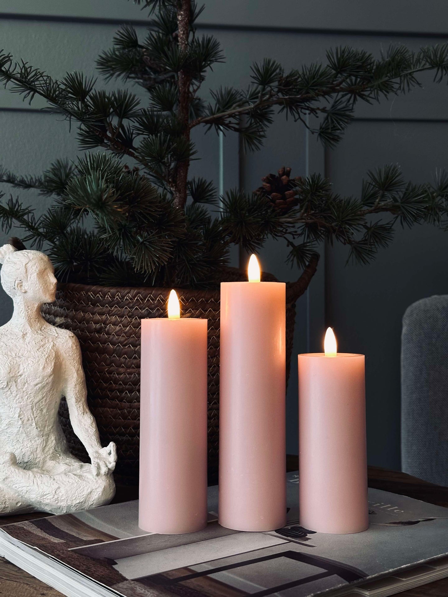 LED Blockljus / Rosa – 3 st Ljus dia 5 cm