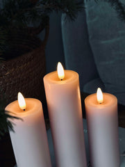 LED-blockljus tillverkas av äkta vax, vilket ger en autentisk känsla och utseende. Den realistiska 3D-flamman efterliknar naturligt ljus och skapar en varm atmosfär utan risken för brand. Kombinationen av äkta vax och 3D-flamman gör dessa ljus till ett säkrare alternativ för hemmet, samtidigt som de bevarar den traditionella ljusets charm.