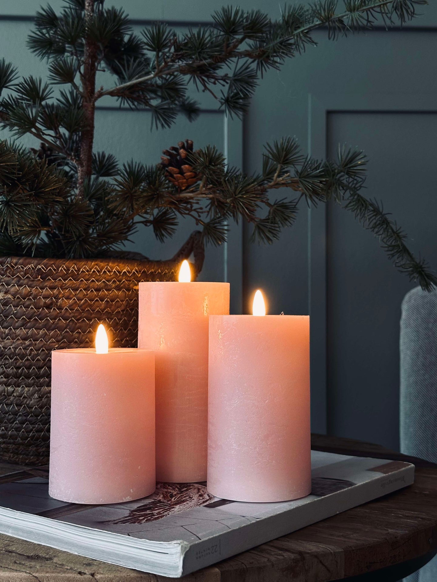 LED Blockljus / Rosa – 3 st Rustikt ljus