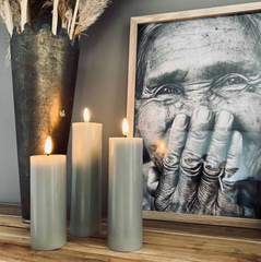 - Setet innehåller tre ljus med måtten Ø 5 cm x 12 cm, 15 cm och 17,5 cm